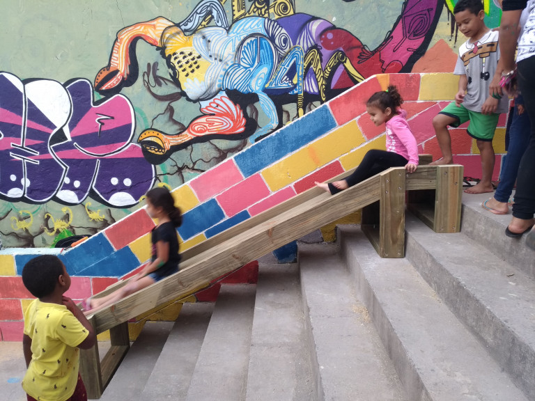 ‘Mind the Step’ is an award-winning initiative that raises awareness about the role of public staircases in São Paulo (Brazil) and challenges its uses through physical interventions co-developed with local communities. Usually abandoned and degraded, stairways are key common spaces, but often unsafe and underused places in Brazilian cities. At the same time, the transformation of staircases and their reintegration into the pedestrian mobility and public spaces network can unlock multiple opportunities for people to meet, relax, play and exercise.