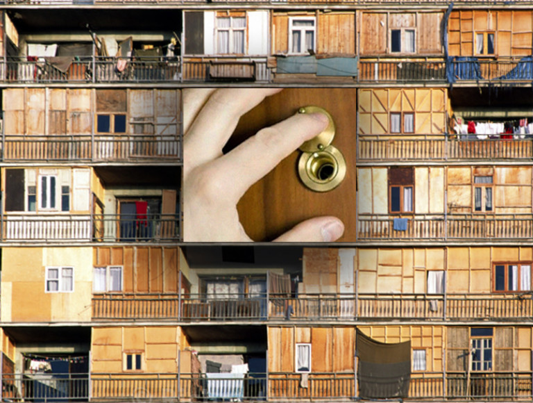 The installation focuses on refugee’s rooms in modernist buildings: hotels, sanatoriums and pensions to highlight the curious “blind spots” in urban structures of Kyiv and Tbilisi. Turning the clean lines of modernist monuments into a hybrid of permanent and temporary structures, human and building matter can serve as a symbolic illustration of the changes after the post-Soviet crisis and the war in Eastern Ukraine and Abkhazia. Authors explore how an informal settlement works in ways the building’s architect never would have conceived. They study social blindness imposed by the propaganda of war.